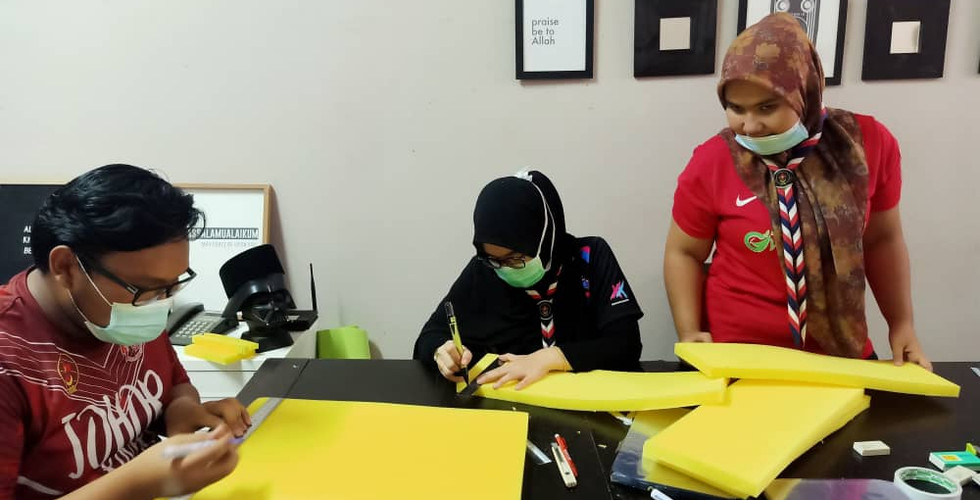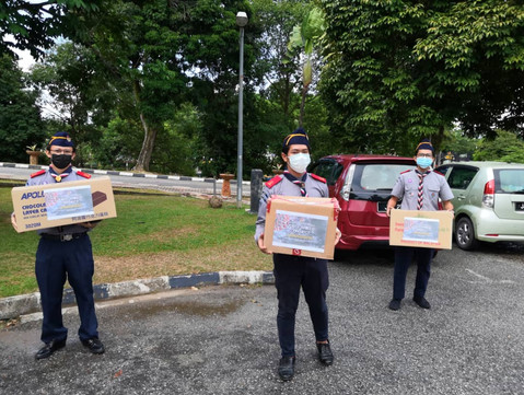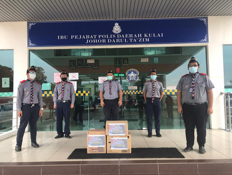 Hasil sumbangan wang tunai daripada orang ramai, ahli Pengakap Kelana Kulai telah menyiapkan 800 pelindung muka yang telah diedarkan di tempat-tempat berikut: